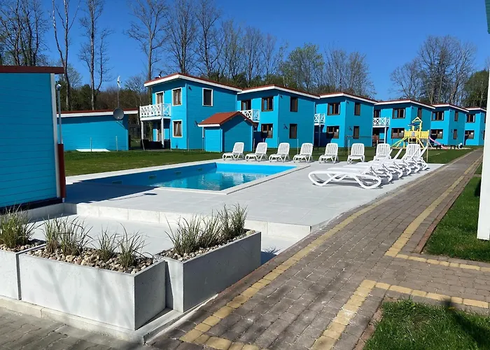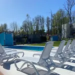 Niechorze Lighthouseから歩いて25分に位置するComfortable Holiday Home No 4, Summer Pool レバルは、庭園の眺めを望むテラスを提供しています。
